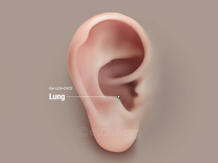 The Li-Chun Huang auricular point, Lung, is located on both ears, occupies the lower area adjacent to the Heart area. Lower Lung is the Ipsilateral Lung.