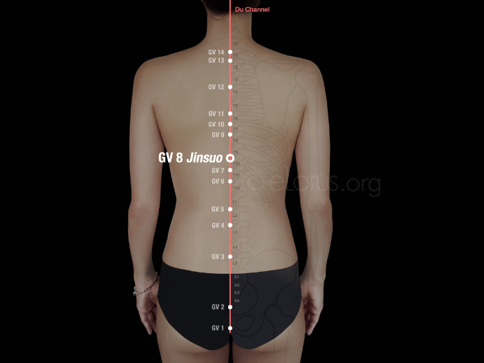 On the posterior midline, in the depression below the spinous process of the 9th thoracic vertebra.