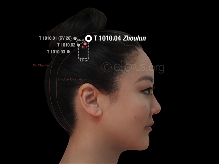 This point overlaps with Qianding (GV 21), which is 3.5 cun directly above the midpoint of the anterior hairline.