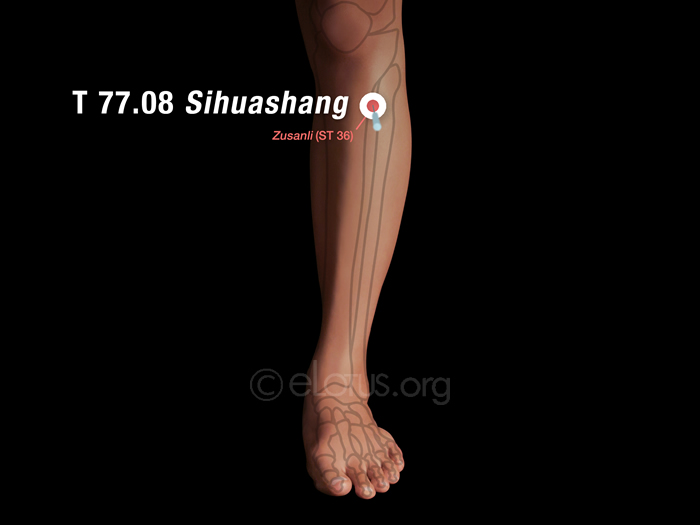 This point overlaps with Zusanli (ST 36), which is 3 cun below the depression lateral to the patella ligament.
